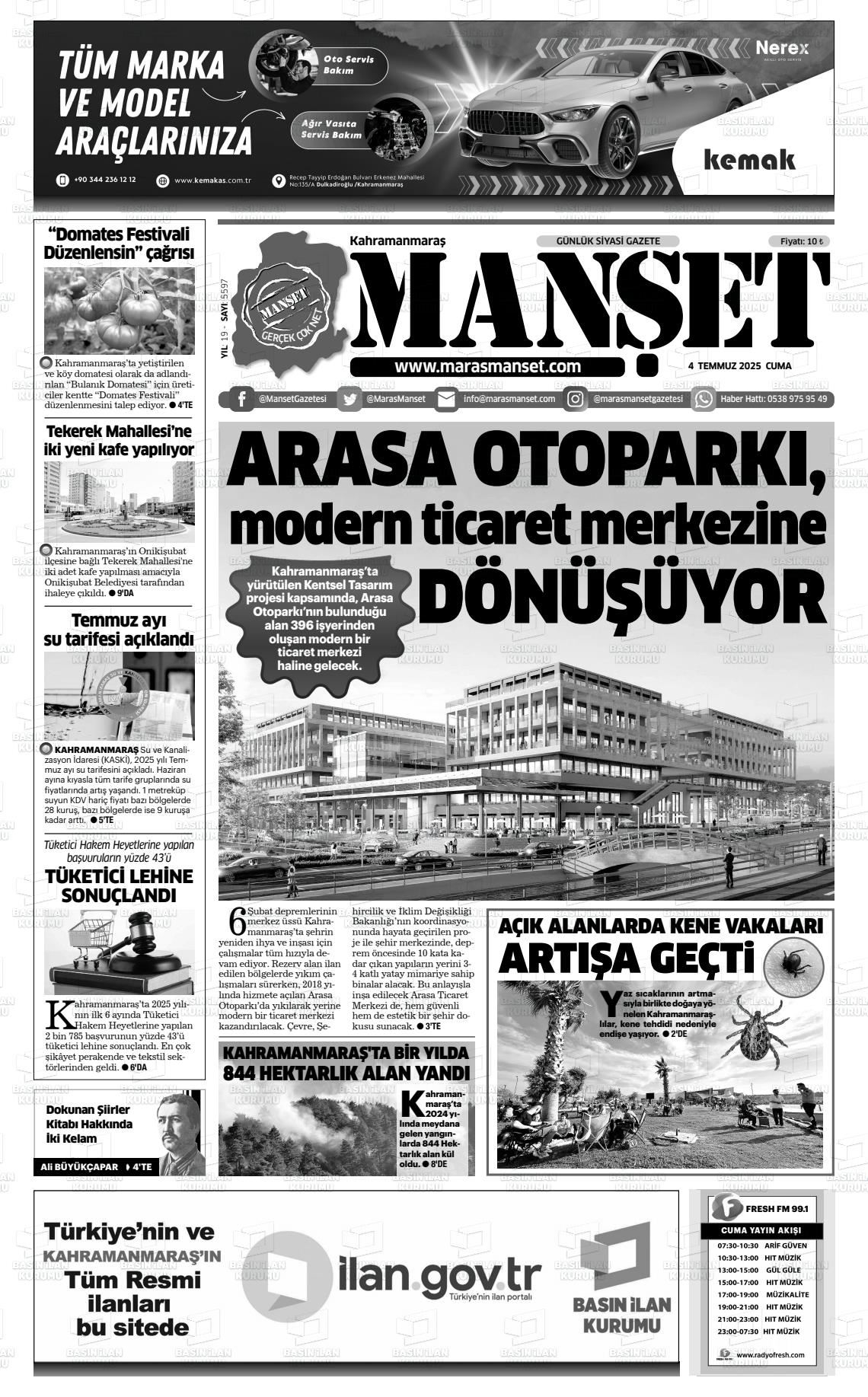 KAHRAMANMARAŞ MANŞET